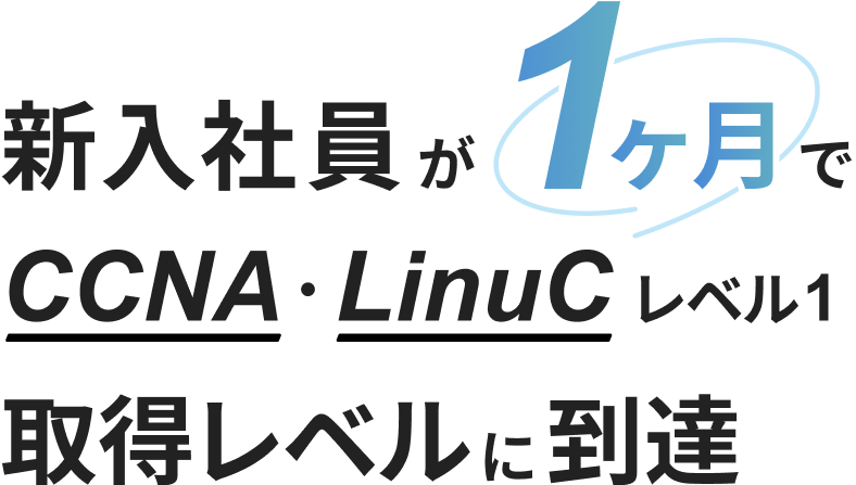 ウズカレBizのインフラエンジニア研修では、1ヶ月でCCNA・LinuCレベル1取得レベル、つまり客先で稼働できるレベルに到達することができます。