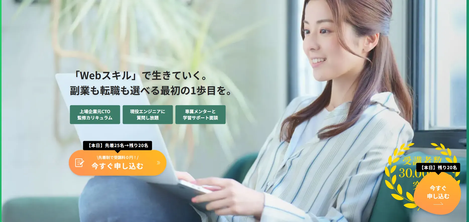 • 毎月先着制で受講料98,000円が0円になるキャンペーンを実施。