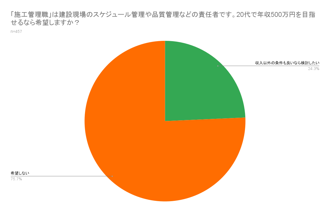 20代で年収500万円でも「施工管理職を希望する」は0%